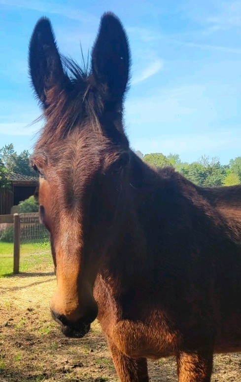 Banjo, like his pasture-mate Toasty, lived a terribly hard life. He was a work mule on an Amish farm, but at some point in his life he suffered an injury to his hip and spine, that caused orthopedic and neurological damage. But he didn’t get to rest or retire. He had to keep on working, causing further damage even as his muscles atrophied and made him weaker.